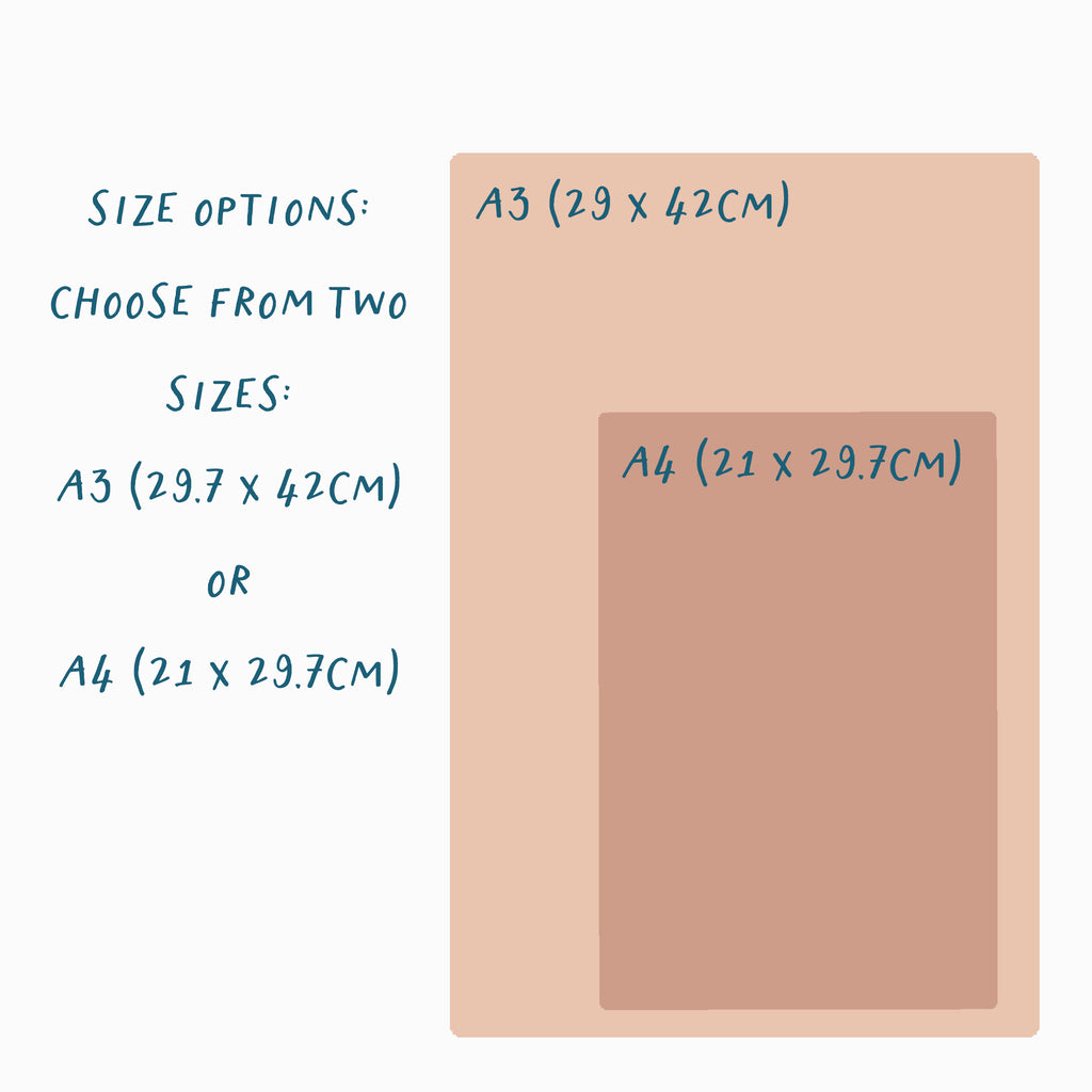 Choose from two art print sizes - A3 (29.7 x 42cm) or A4 (21 x 29.7cm)